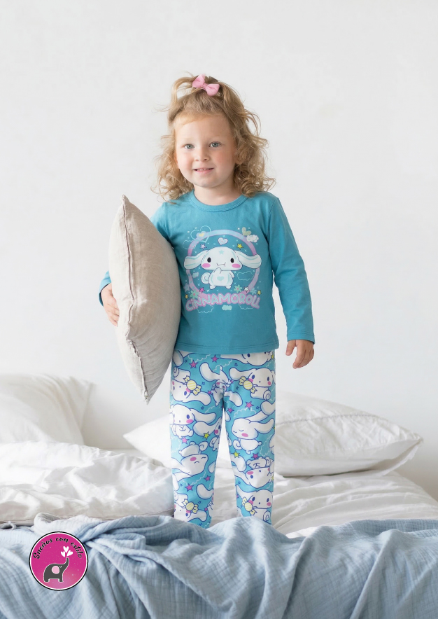 · Pijama de Cinamorroll luminosa en piel durazno para niña. Tallaje disponible de la 4 A LA 16.A41:C41.