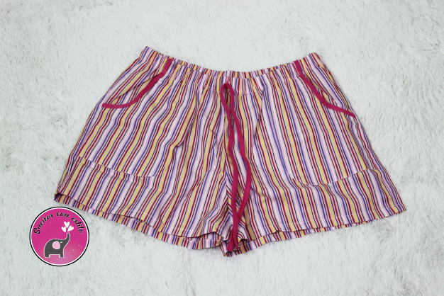 · Short dama con bolsillos elaborada en dacron con estampado en rayas.