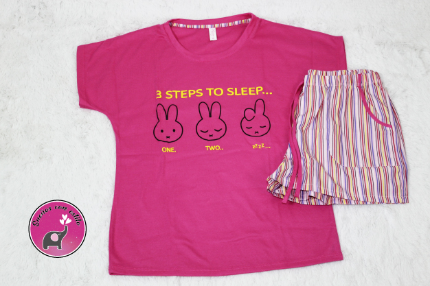 · Pijama blusa manga corta y short en algodón y dacron para dama, Tallaje disponible de la S, M, L a la XL.
