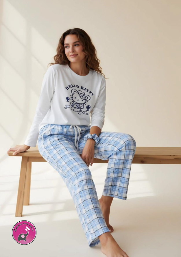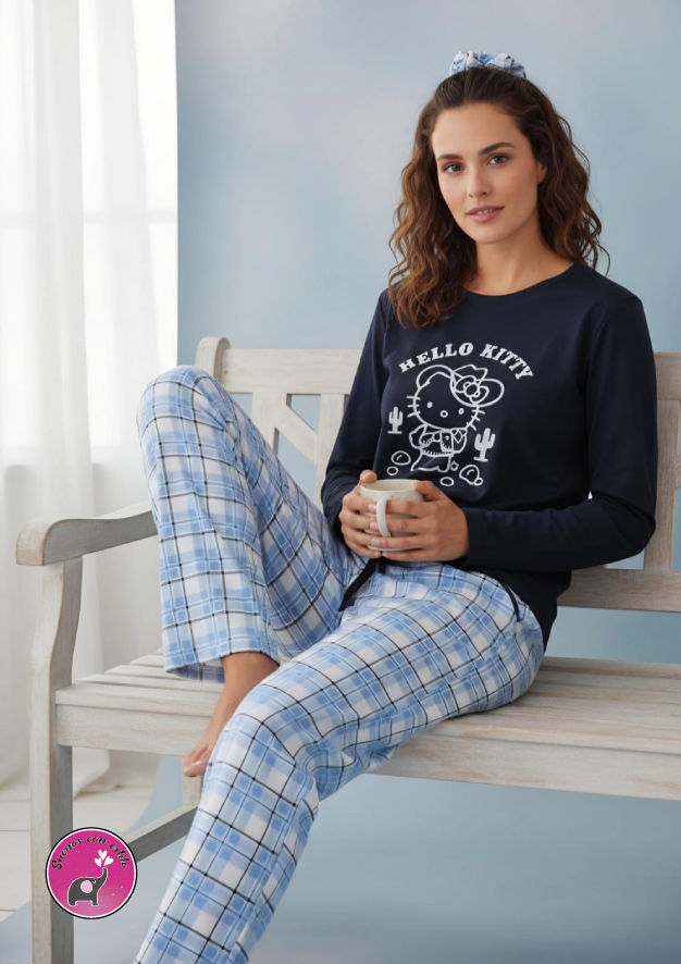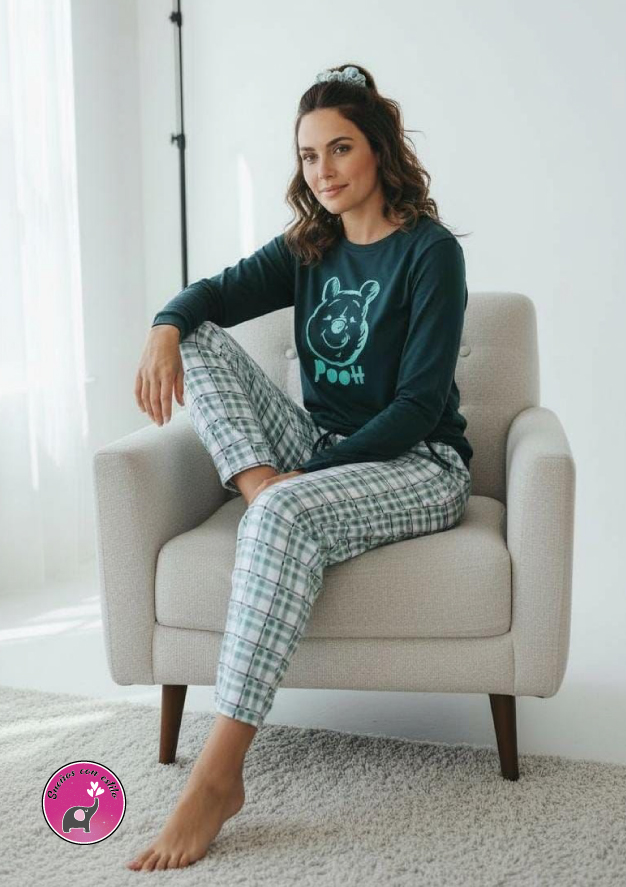Pijama manga larga dama algodón, pantalón algodón perchado precio $ 85.000